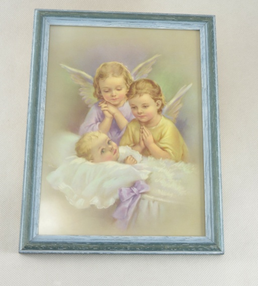 - Andělský obrázek nad postýlku "Hezké sny" varianta II - zasklený, v rámečku - Modravý rámeček
