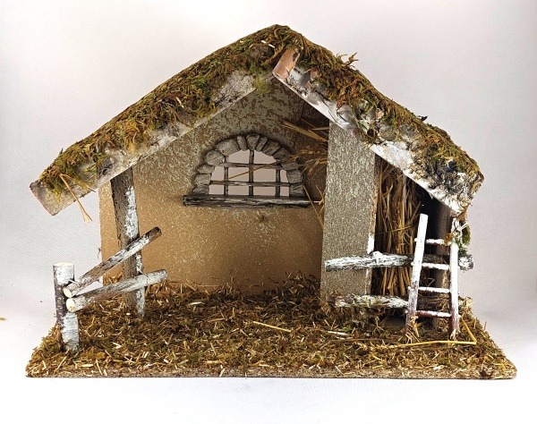 Tato majestátní betlémská chýše o rozměrech 42 x 20 x 30 cm představuje důstojný přístřešek pro Svatou rodinu ve vašem vánočním domově. Je vyrobena z přírodních materiálů, jako je překližka, dřevo a korkové odřezky, které jsou vkusně doplněny o skutečný mech. Detail v podobě malého okénka dodává stavbě hloubku a útulnost, čímž vytváří dokonalou kulisu pro vánoční příběh. Chýše je primárně určena pro italské figurkové řady firem jako Euromarchi o velikosti 10 nebo 12 cm. Její robustní provedení z ní činí ústřední prvek vánoční výzdoby, kolem kterého se může rozrůstat celé betlémské městečko. Je to hodnotný doplněk pro rodiny, které si zakládají na tradičním stavění betléma a chtějí dětem zprostředkovat zázrak svaté noci v co nejkrásnější a nejvěrnější podobě.