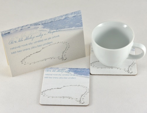 - Dárek do obálky - sada přání a podtácku, motiv "Ale ti, kdo skládají naději v Hospodinu ... "