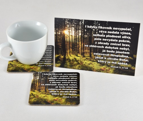 Dárek do obálky - sada přání a podtácku, motiv "I kdyby fíkovník nevypučel... "Skladem > 569 Kč57 Kč bez DPH
