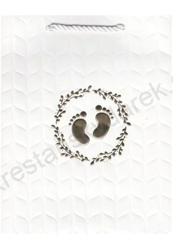Luxusní dárková taška v bílé barvě se zlatým motivem stop krásně doplní Váš dárek nejen ke křtu.