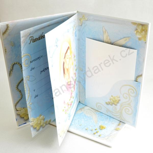 - Dětská upomínka na křest - v knižních deskách s kapsou na fotku - Modrá