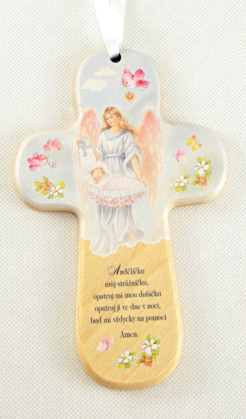 Dětský dřevěný křížek s modlitbou k Andělu strážnému (s miminkem v peřince) - Modrá peřinkaSkladem 4229 Kč189 Kč bez DPH