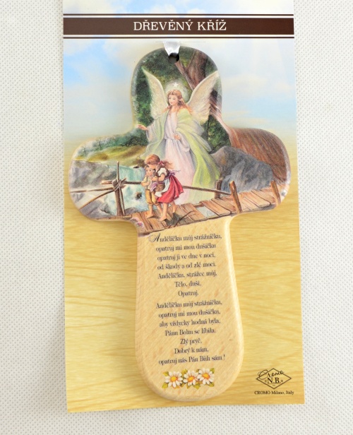 Dětský dřevěný křížek s modlitbou k Andělu strážnému - tradiční