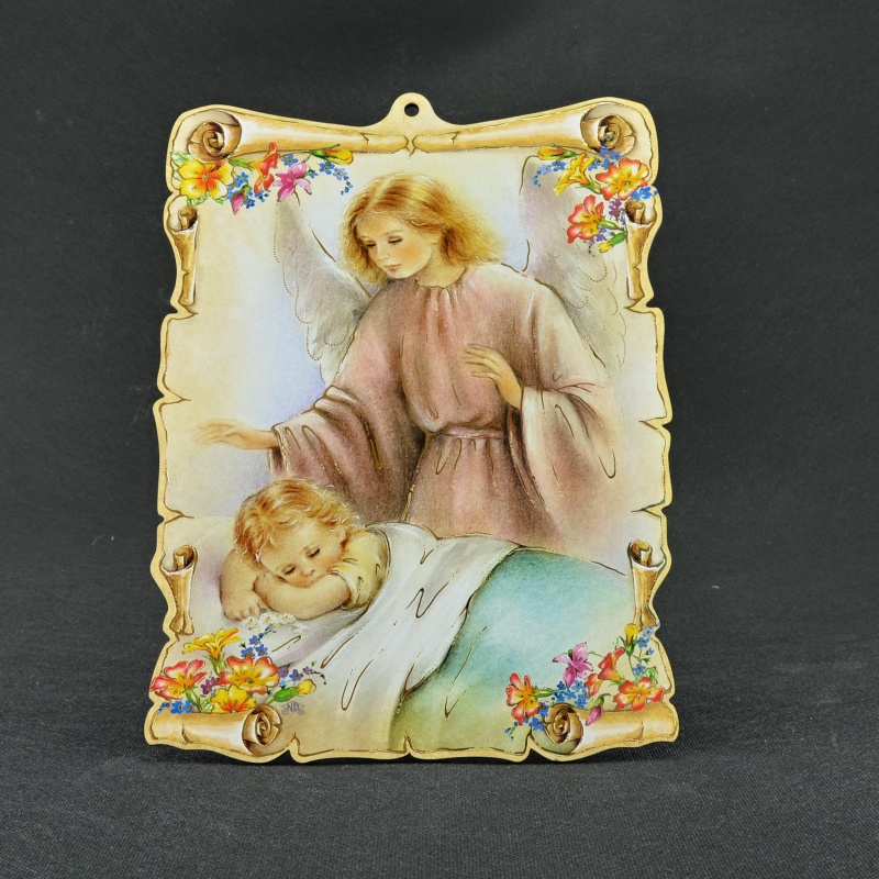 Vlídný obrázek anděla strážného na dřevěné desce je dekorován ve stylu pergamenu se zlatými konturami. Vyobrazení anděla, který přichází dát dětem dobrou noc, přinese do pokojíčku pocit bezpečí před každým usnutím. Větší formát obrazu 22,5 cm z něj činí výrazný dekorativní i duchovní prvek dětského světa. Tento italský obrázek je ideálním dárkem k prvním narozeninám nebo jmeninám. Učí děti vnímat andělskou blízkost a je skvělým společníkem při společné večerní modlitbě rodičů s dětmi. Precizní tisk na dřevě a uctivý motiv potěší děti i jejich rodiče.
