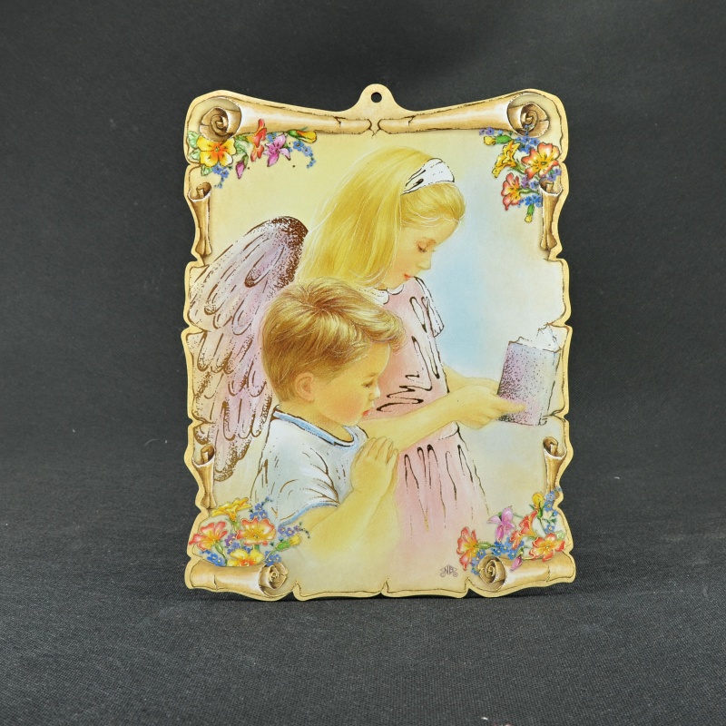 Tento originální obrázek tištěný na dřevě zachycuje andělíčka strážného v klidné scéně při předčítání z knihy. Celkové provedení s efektem srolovaného pergamenu a jemným zlatavým dekorem dodává obrazu nádech pohádkovosti a starobylé důstojnosti. S rozměrem 22,5 x 16,5 cm je obraz dostatečně výrazný, aby se stal dominantou dětského modlitebního koutku či stěny nad lůžkem.nnMotiv anděla, který předčítá, symbolizuje moudrost, vedení a trpělivou péči, kterou nám nebeští ochránci věnují. Je to překrásný dar k narození, ke křtu nebo k jmeninám, který přinese do dětského pokoje pocit bezpečí a připomínku Boží blízkosti. Kvalitní dřevěný podklad a precizní tisk zaručují, že tento obrázek bude provázet dítě po celé dětství jako tichý strážce jeho snů a učitel prvních modliteb.