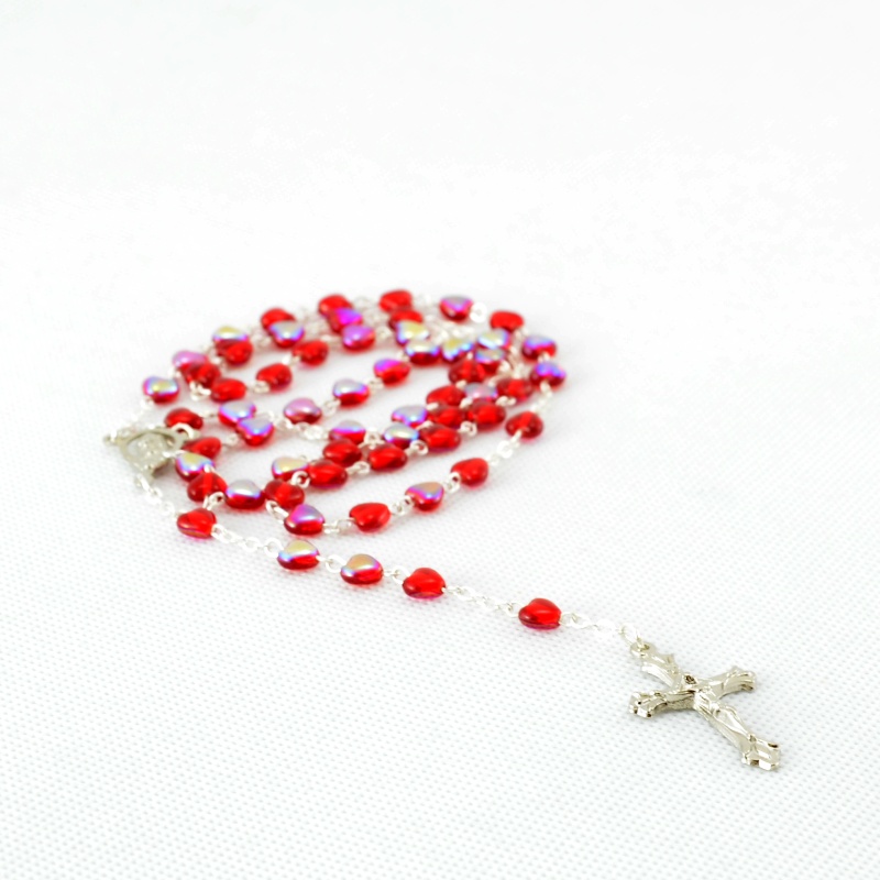 - Dívčí růženec z Jabloneckých skleněných perliček: červená srdíčka se stříbrným ketlováním