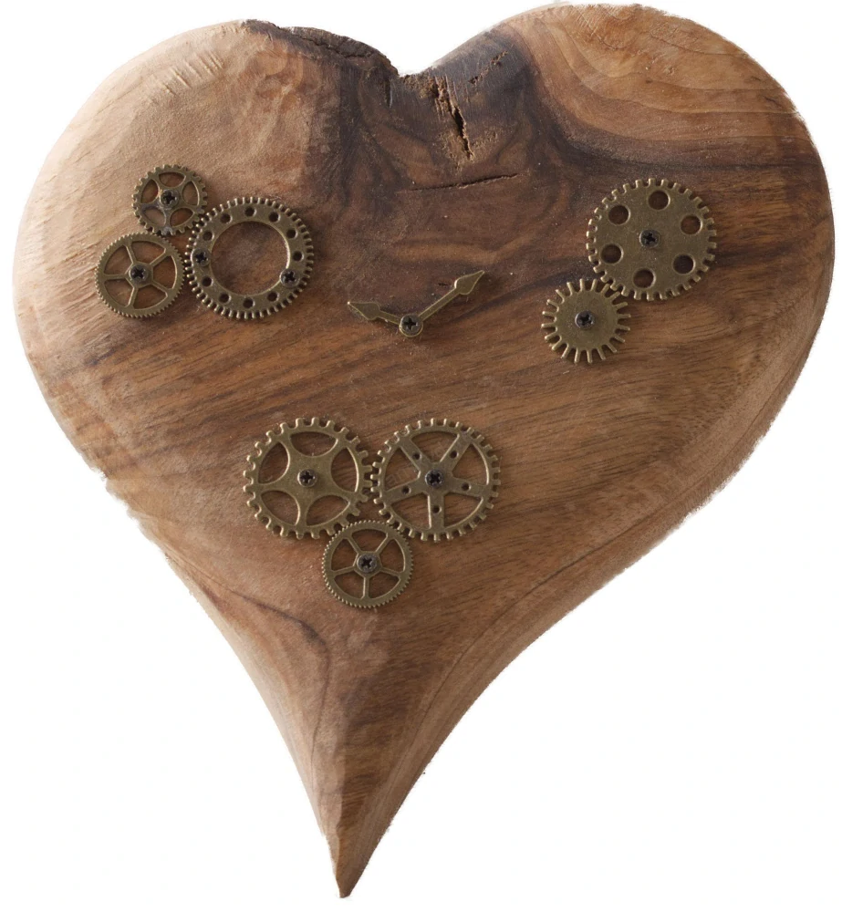 - Dřevěné srdce z ořechového dřeva s motivem "stroj času"