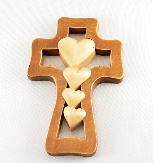 Kapky lásky - kříž s kaskádou čtyř přírodně světlých srdcí