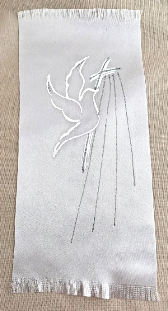 Křestní rouška ručně malovaná, Holubice v záři kříže