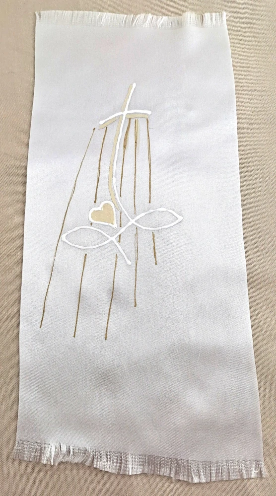 Křestní rouška ručně malovaná, vzor rybičky pod křížem