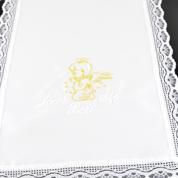 - Křestní rouška vyšívaná, vzor Andělíček (zlato - bílá výšivka)