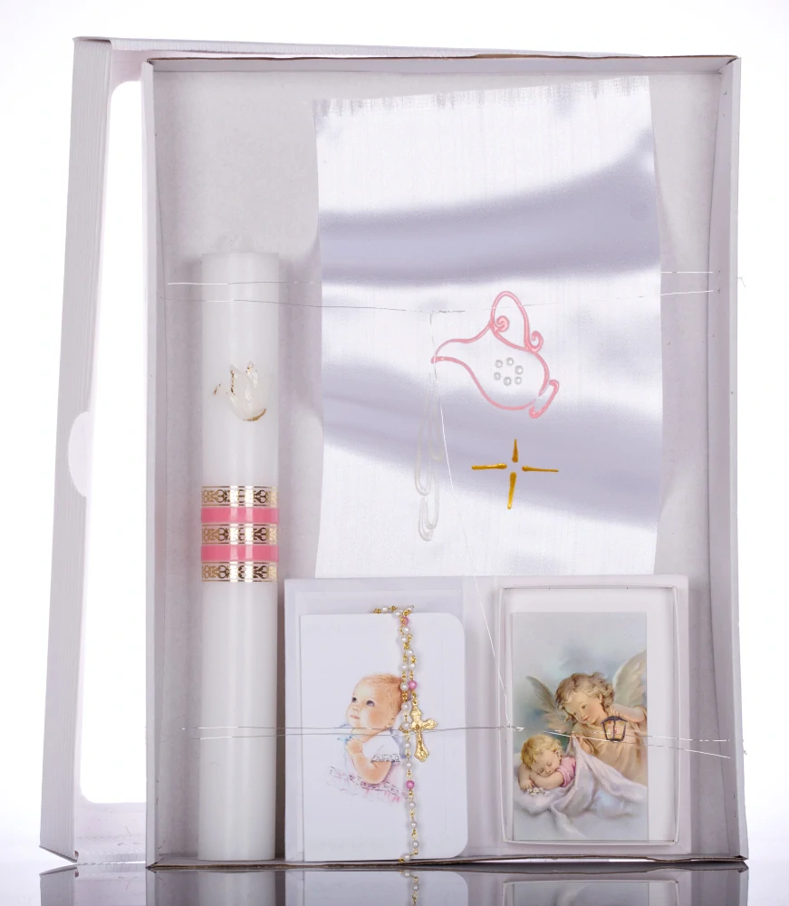 Jemná a něžná křestní sada, která promění tento výjimečný den v krásnou vzpomínku na celý život. Sada je laděna do jemných růžových tónů a je ideálním dárkem pro holčičku k příležitosti křtu.