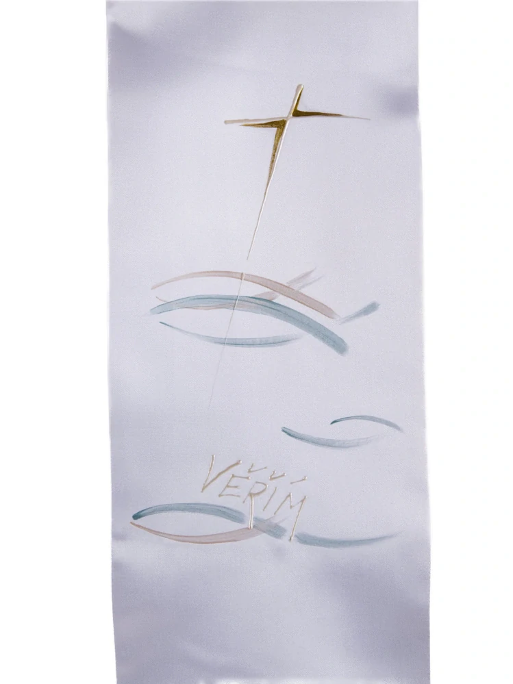 Barevná kombinace zlaté, světle modré a bílé působí velmi čistě, klidně a slavnostně. Každá stuha je díky ruční malbě originálem, vytvořeným s důrazem na detail a cit pro estetiku. Tento jedinečný doplněk je ideální pro křest dospělých i další duchovní okamžiky a stane se krásnou památkou na výjimečný den.