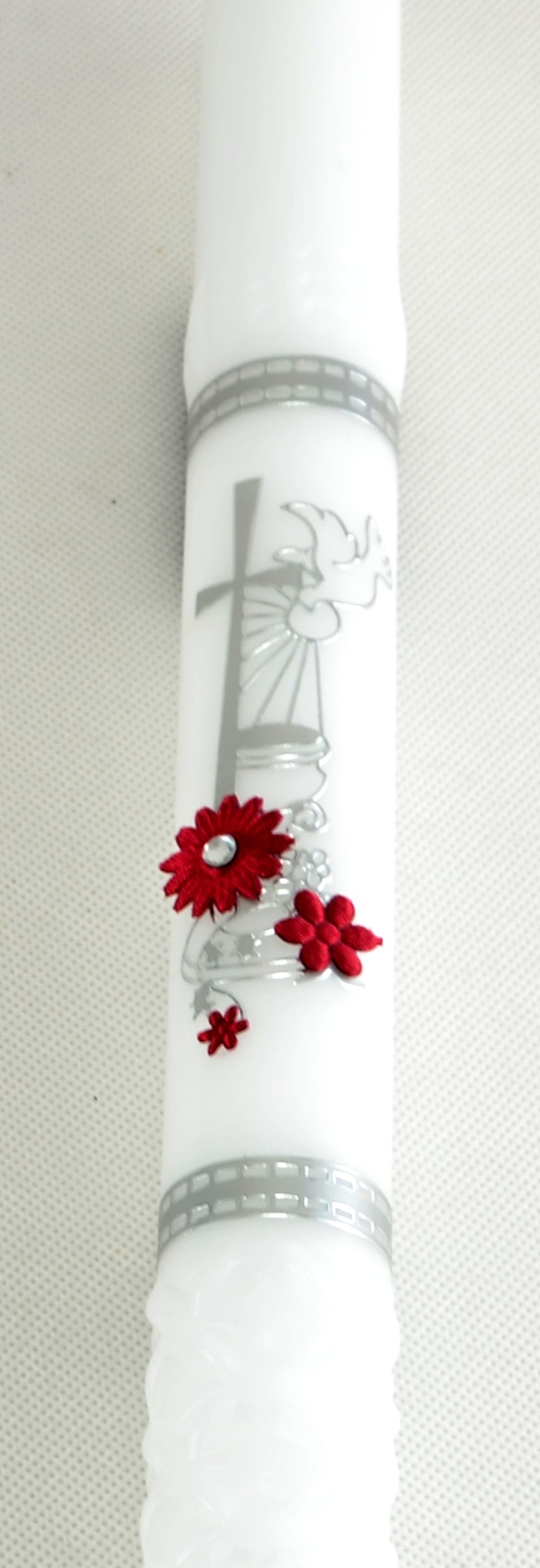 - Křestní svíce - velká, s možností doplnit si jméno a datum křtu - červeno stříbrné aplikace
