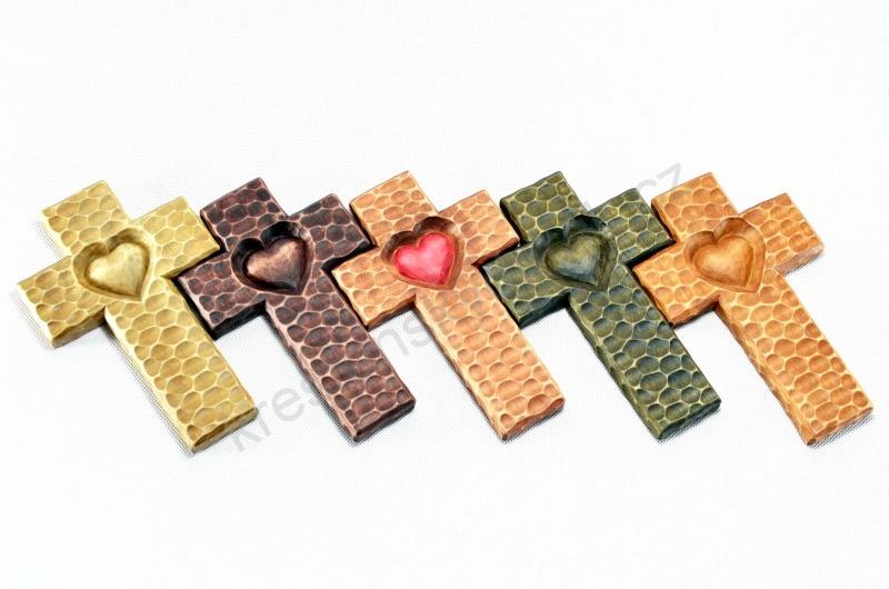 Kříž dlabaný "Srdce" - 16 cm - Medová s červeným srdcemSkladem 2 ks329 Kč/ ks272 Kč bez DPH