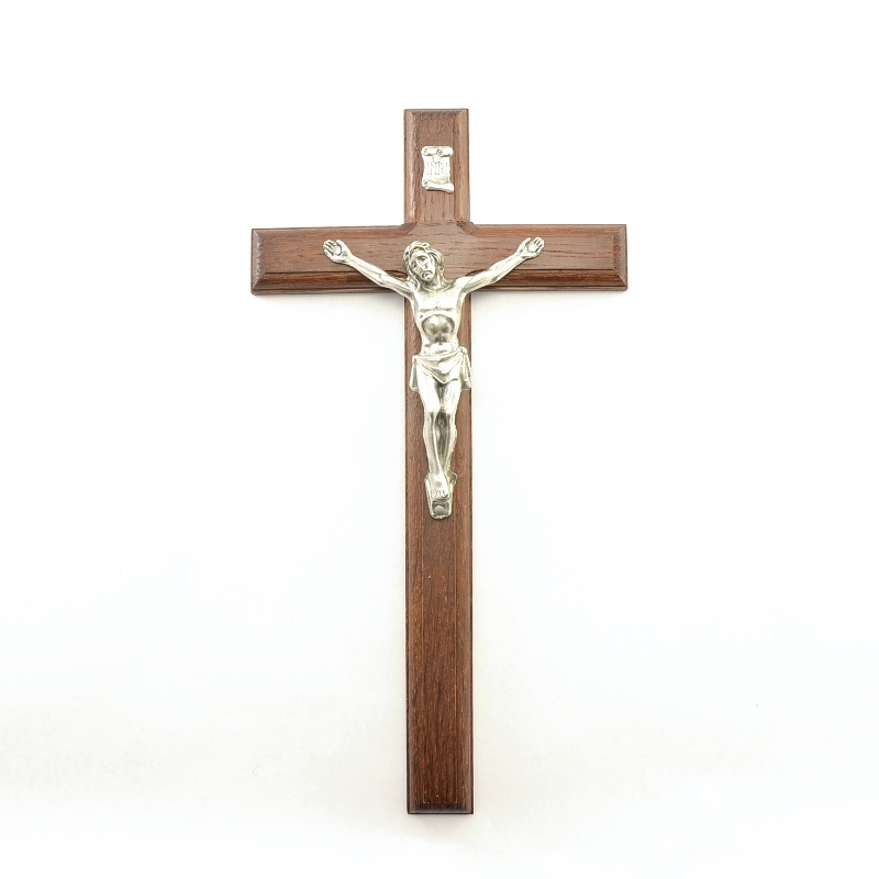 Elegantní nástěnný kříž v tmavě hnědém odstínu dřeva je doplněn o vkusnou kovovou postavu Ježíše Krista ve zlaté barvě. Tradiční frézování dodává dřevu hloubku a důstojnost, která vynikne v moderním i klasickém interiéru. Výška 30 cm z kříže činí výrazný symbol víry, který se stane duchovním středobodem vašeho domova. Je to hodnotný dar k posvěcení nového domu, k svatbě nebo k biřmování. Kříž přináší do domova nebeské požehnání a slouží jako stálá připomínka Kristovy oběti a lásky ke každému člověku. Kvalitní řemeslné zpracování zaručuje, že tento kříž bude provázet vaši rodinu po mnoho generací.