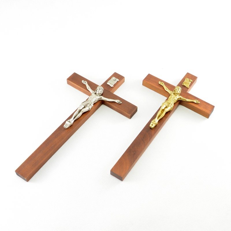 Důstojný nástěnný kříž z tmavě hnědého dřeva nese kovovou figuru Krista ve zlaté barvě. Tato barevná kombinace působí velmi vznešeně a tradičně, čímž dodává interiéru vážnost a duchovní hloubku. Kříž je vyroben s důrazem na kvalitu materiálu a čistotu linií, aby se stal trvalou součástí vašeho domova. Díky svému klasickému provedení se hodí jako hodnotný dar k církevním svátostem i významným životním jubileím. Kříž o menší výšce je praktický pro umístění na stěnu v jakémkoliv koutě domácnosti, kde vybízí k tiché modlitbě a krátkému zastavení v každodenním shonu.