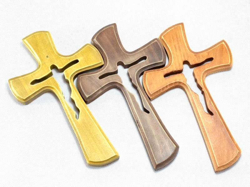 Majestátní dřevěný kříž o výšce 60 cm s uctivým prořezávaným dekorem vynikne jako dominantní symbol víry v každém domově. Tmavě hnědá barva ořechového dřeva s metalickým nádechem dodává kříži vznešenost a nadčasovou eleganci. Je to hodnotný dar k posvěcení domova, ke svatbě nebo k významnému výročí, který přináší pocit Boží ochrany a pokoje.