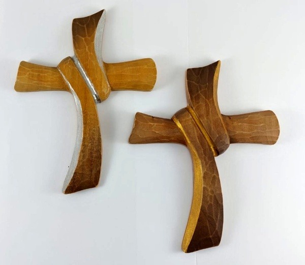 Kříž s vázaným břevnem - dřevěný s metalickým efektem, 20 cm