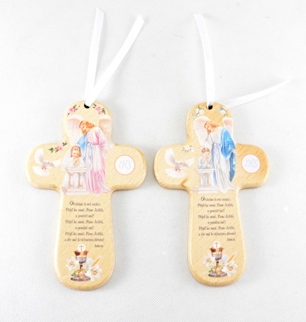 Památeční křížek z přírodního dřeva je doplněn o laskavou modlitbu a motiv chlapce u jeho prvního svatého přijímání. Je navržen jako trvalá upomínka na slavnostní den, kdy dítě poprvé plně přijalo Ježíše v Eucharistii. Křížek lze snadno zavěsit nad postýlku nebo na čestné místo jako připomínku sjednocení s Boží rodinou. Kvalitní řemeslné zpracování z něj činí vzácný dar od rodičů či kmotrů, který bude obdarovaného chlapce provázet na jeho celoživotní cestě víry.