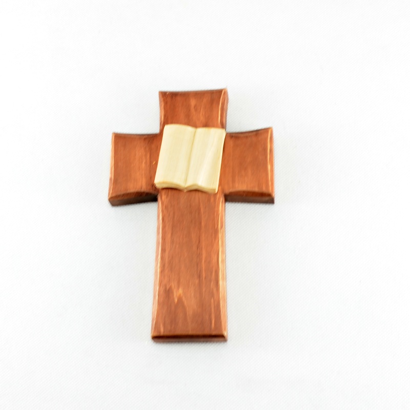 Netradiční dřevěný křížek, který originálně propojuje symbol víry s "Knihou knih". Vyobrazení Bible na kříži připomíná, že Boží slovo je zamilovaným dopisem Stvořitele lidem a má být základem našeho života. Výška 16 cm je ideální pro umístění do domácí knihovny nebo k modlitebnímu koutku. Je to skvělý dárek pro biřmovance, studenty teologie nebo každého milovníka Písma svatého. Křížek působí velmi moderně a svěže, přičemž si zachovává hlubokou duchovní myšlenku. Přinese do vašeho domova impuls k pravidelné četbě a rozjímání nad biblickými texty.