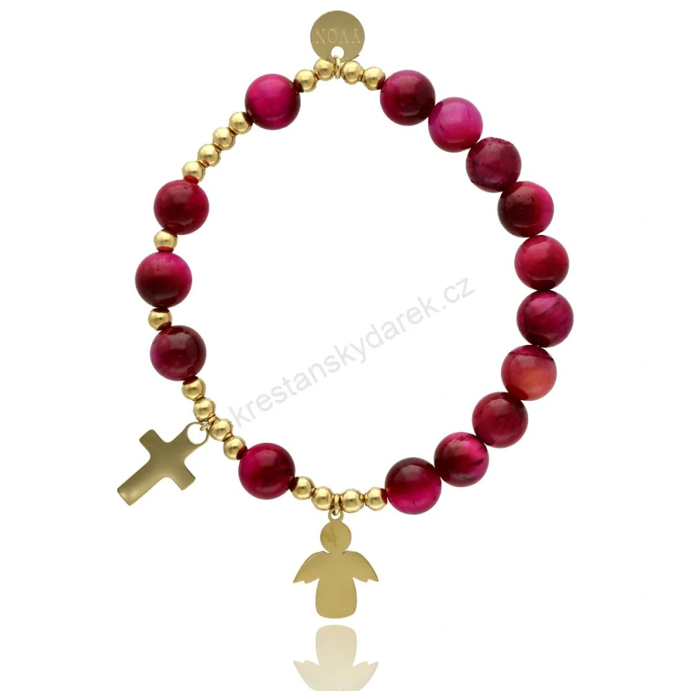 Elegantní dámský (dívčí) růženec na ruku vyrobený z kvalitní pozlacené ušlechtilé oceli a doplněný přírodními kameny růžového tygřího oka o velikosti 8 mm. Tento stylový šperk spojuje duchovní význam s moderním designem, díky čemuž je vhodný jak pro každodenní nošení, tak i pro slavnostní příležitosti.