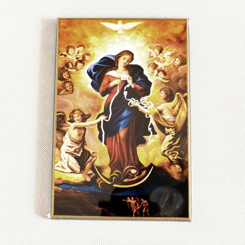 Působivý obraz Panny Marie rozvazující uzly je symbolem naděje a pomoci v neřešitelných životních situacích. Věřící se k tomuto zobrazení utíkají s prosbou o rozpletení těžkostí v rodině, vztazích nebo zdraví. Masivní dřevěný podklad a kvalitní tisk ve formátu 20 x 30 cm dodávají obrazu vážnost a důstojnost. Obraz je připraven k zavěšení na zeď a stane se duchovní oporou vašeho domova. Je to velmi vhodný dar pro každého, kdo prochází těžkým životním obdobím, nebo jako projev podpory a víry pro blízkou osobu. Kvalitní povrchová úprava zajišťuje trvalou hodnotu tohoto díla.