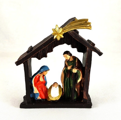 Drobná vánoční dekorace z polyresinu zachycuje Svatou rodinu ve skromné chatrči v atmosféře první svaté noci. I přes své malé rozměry vyniká detailním zpracováním, které navozuje pocit pokoje, pokory a rodinného štěstí. Je to ideální pozornost pro kolegy, přátele nebo vnoučata k navození vánoční nálady v každém koutě domova. Betlémek připomíná skutečný smysl Vánoc a Boží lásku, která se zrodila v chudobě pro spásu celého světa.