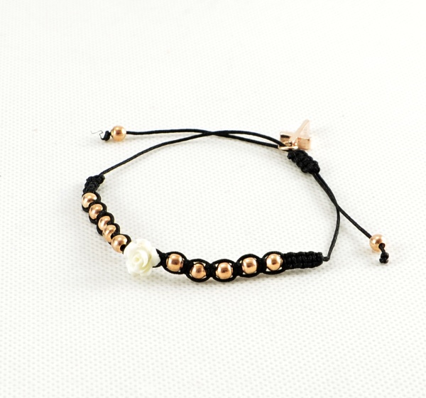 Náramek šňůrkový s perlemi a růžičkou - Zlaté perličkySkladem > 5 ks95 Kč/ ks79 Kč bez DPH