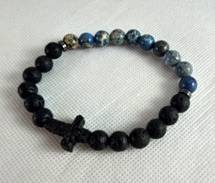 - Pánský náramek z žíhaného jaspisu a lávy, s křížkem