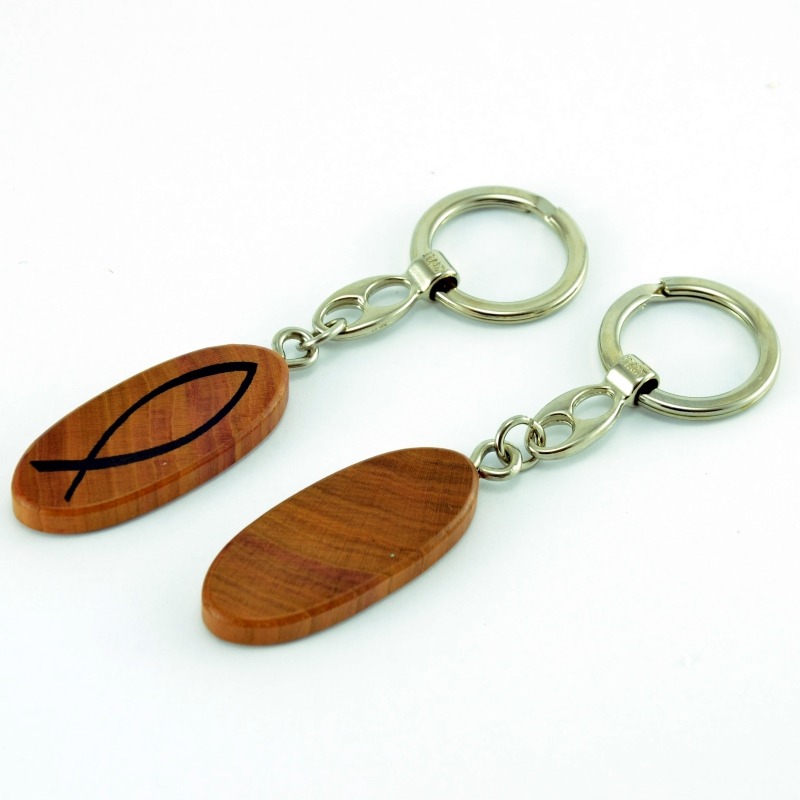 Kvalitní klíčenka vyrobena z pravého dřeva nese decentní symbol křesťanské rybičky, který je jedním z nejstarších znaků víry. Hladký dřevěný ovál je velmi příjemný do dlaně a díky silnému kovovému kroužku zajistí bezpečné nošení vašich klíčů. Dokonalé řemeslné zpracování zaručuje dlouhou životnost a stálost tohoto praktického dárku. Je to vkusná pozornost pro muže i ženy k narozeninám nebo jako ochrana na cesty. Klíčenka slouží jako tichá připomínka Boží blízkosti v každodenním životě, ať už otevíráte dveře svého domova nebo startujete auto. Přírodní materiál dodává předmětu hřejivost a nadčasový vzhled.