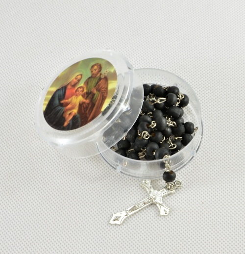 - Růženec s vůní růží - dřevěný, v kulaté krabičce - Šedohnědá
