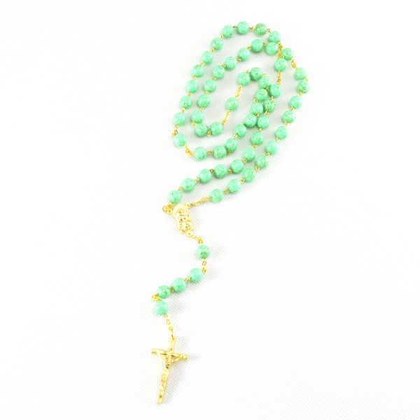 - Růženec z Jabloneckého skla - perly mentolové žíhané větší - NOVINKA