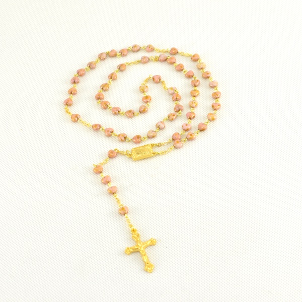 - Růženec z Jabloneckých skleněných perliček: béžová srdíčka se zlatavým křížkem