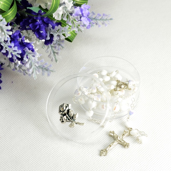 Klasický a přesto originální růženec s bílými srdíčky a stříbřitým ketlováním vyzařuje pokoru a čistotu. Čistě bílá barva perliček odkazuje na sváteční bílé roucho, zatímco stříbrné odlesky kovu dodávají celku moderní a svěží vzhled. Precizní řemeslná práce z Jablonecka je zárukou kvality, kterou oceníte při každém doteku korálků během modlitby. Růženec je velmi oblíbený jako památka na biřmování nebo jako dárek pro kmotřenky. Jeho lehkost a decentní provedení z něj dělají důstojný doplněk pro chvíle usebrání. Věříme, že se stane cenným rodinným pokladem, který bude provázet majitele na cestě víry.