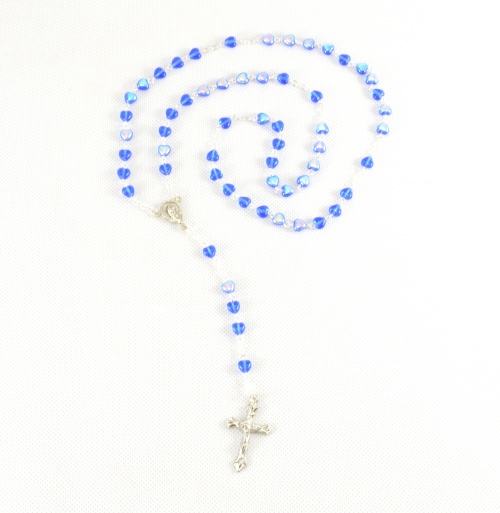 Krásný klasický růženec z perlí ve tvaru srdce pochází z tradiční jablonecké bižuterie. Kvalitní řemeslné zpracování se stříbrným ketlováním zaručuje dlouhou životnost a stálost barev. Tento růženec je ideálním dárkem k prvnímu svatému přijímání nebo pro každodenní modlitbu v mariánské úctě. Šňůrka s perličkami vede k rozjímání o událostech z Kristova života.