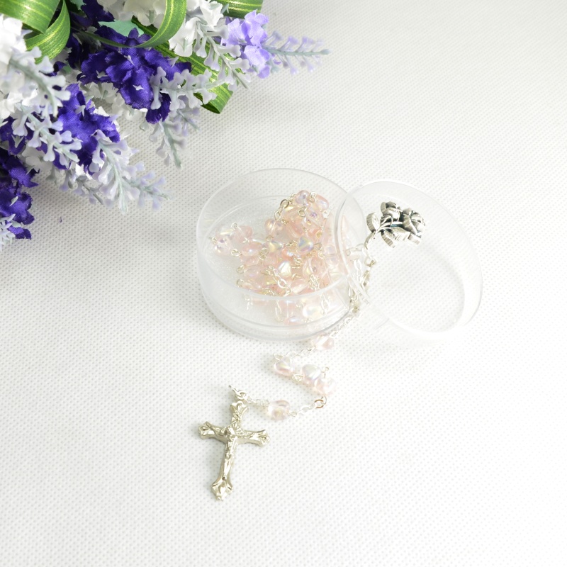 Jemně růžová průhledná srdíčka tohoto růžence vnášejí do modlitby nádech něhy a radostné naděje. Skleněné korálky v kombinaci se stříbřitým kovem vytvářejí křehkou a uctivou kompozici, která je ideálním dárkem pro dívky k jejich velkým duchovním dnům. Průsvitnost perliček symbolizuje upřímnost a čistotu úmyslů věřícího před Boží tváří. Tento růženec je nejen krásným estetickým kouskem, ale především praktickým nástrojem k rozjímání o radostných i slavných tajemstvích Kristova života. Kvalitní zpracování jablonecké bižuterie zajišťuje dlouhou životnost a stálost materiálu.