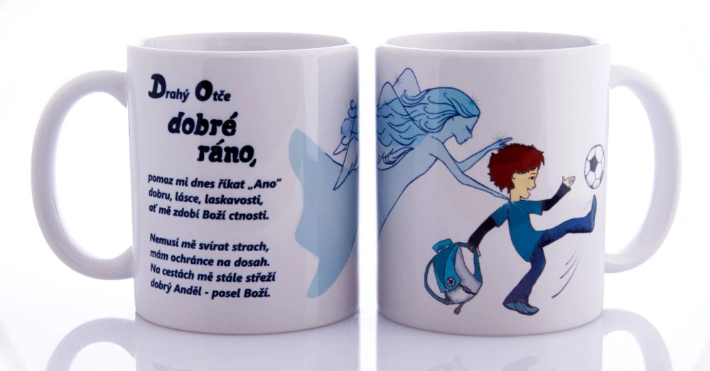 Tento milý dětský hrneček v modré barvě je doplněn o text ranní modlitbičky, aby provázel děti hned od začátku jejich dne. Originální kresba a šikovné velké ouško jsou přizpůsobeny dětským rukám, což z hrnečku činí oblíbeného společníka u snídaně. Je to praktický dar, který nenásilně vede děti k vnímání Boží přítomnosti v každodenních chvílích. Hrneček o objemu 0,25 l je vyroben z kvalitního porcelánu s odolným potiskem. Skvěle poslouží jako dárek ke křtu, k narozeninám nebo k svátku pro malé kluky. Pomáhá budovat návyk ranního zastavení s Pánem Bohem v duchu radosti a vděčnosti. Hrnek je dodáván v krabičce pro snadné darování.