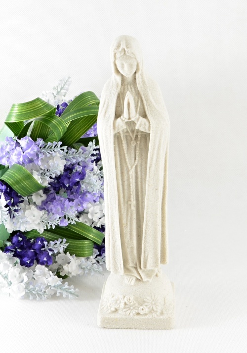Tato uctivá soška Panny Marie ve Fatimském zjevení je vyrobena z vysoce kvalitního drceného pískovce. Svojí výškou 22 cm a bílo-šedým přírodním vzhledem působí velmi uctivě a nadčasově. Díky odolnosti materiálu je soška vhodná nejen pro vnitřní modlitební koutky, ale i pro umístění v zahradě, skalce nebo výklenku domu jako symbol nebeské ochrany. Česká výroba zaručuje precizní zpracování detailů tváře a roucha, které vybízejí k tiché modlitbě a důvěře v mariánskou přímluvu. Je to krásný dar k narozeninám, biřmování nebo jako požehnání pro rodinu hledající mariánskou záštitu. Soška přinese do vašeho prostředí atmosféru pokoje a připomínku Boží blízkosti pod Mariiným pláštěm.