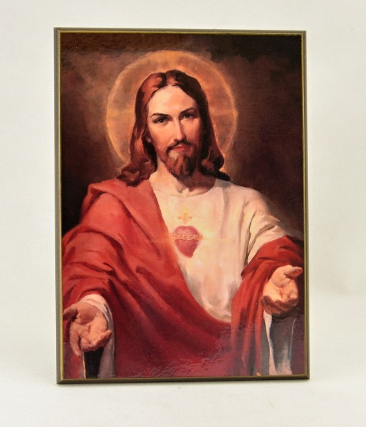 Působivý obraz na dřevě s motivem Nejsvětějšího Srdce Ježíšova je symbolem nekonečného Božího milosrdenství a lásky k lidem. Toto vyobrazení vybízí k tiché modlitbě a odevzdání všech starostí do rukou Spasitele. Kvalitní zpracování na dřevěné desce dodává obrazu uctivý a hřejivý ráz.Obraz o velikosti 20 x 30 cm je ideální jako ústřední prvek domácího oltáře. Slouží jako stálá připomínka Kristovy oběti a je krásným darem k biřmování, svatbě nebo jako posila pro nemocné.