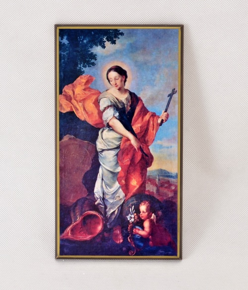Kvalitně zpracovaný obraz na dřevě zobrazuje svatou Markétu jako vzor víry a nebeskou přímluvkyni pro váš domov. Lakovaný povrch a masivní dřevěný podklad zaručují dlouhou životnost této duchovní dekorace. Je to ideální dar k jmeninám pro nositelky jména Markéta nebo jako požehnání do rodiny hledající její záštitu.
