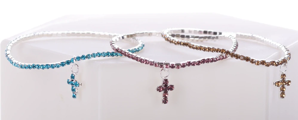 - Třpytivý kamínkový náramek s křížkem - mini kamínky, různé barvy