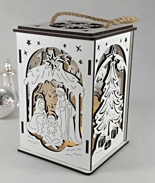 - Vánoční lucernička - s LED "čajovou" svíčkou (bílá, větší)